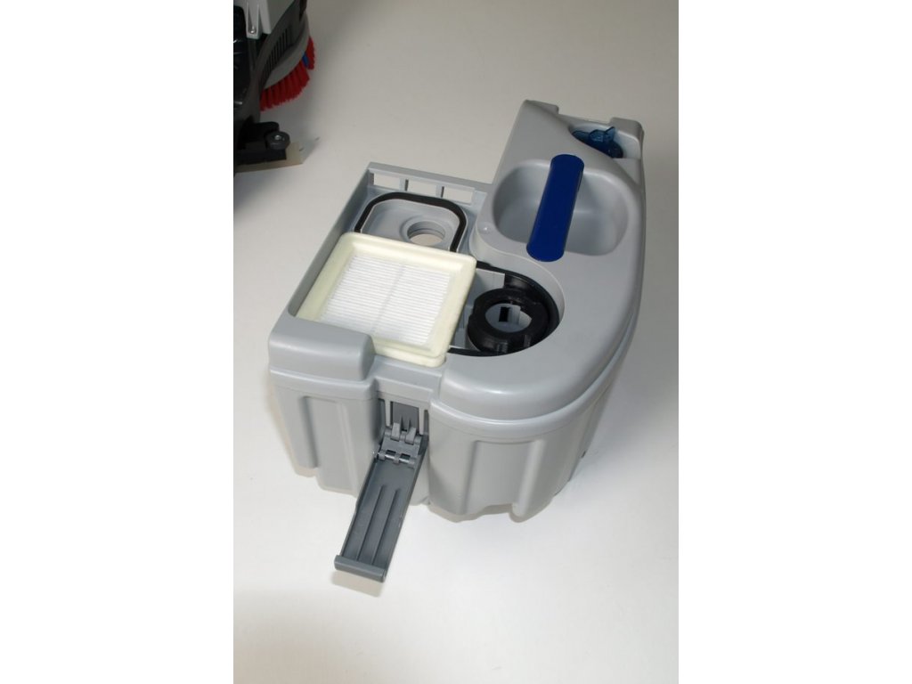Sběrná nádrž umístěna na základně je vybavena plovákem a ochranným filtrem motoru Hepa H11. Omyvatelný Hepa filtr je ošetřen baktericidně-virucidním přípravkem I-Protec k likvidaci bakterií, plísní a virů.