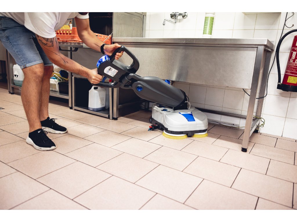 Máme zkušenosti z provozu škol a školek, nebo z restaurací, kuchyní a výroby potravin. Stroj si poradí i s nečistotami ve spárách dlažby, s mastnotou nebo se špínou na protiskluzovém povrchu se strukturou.